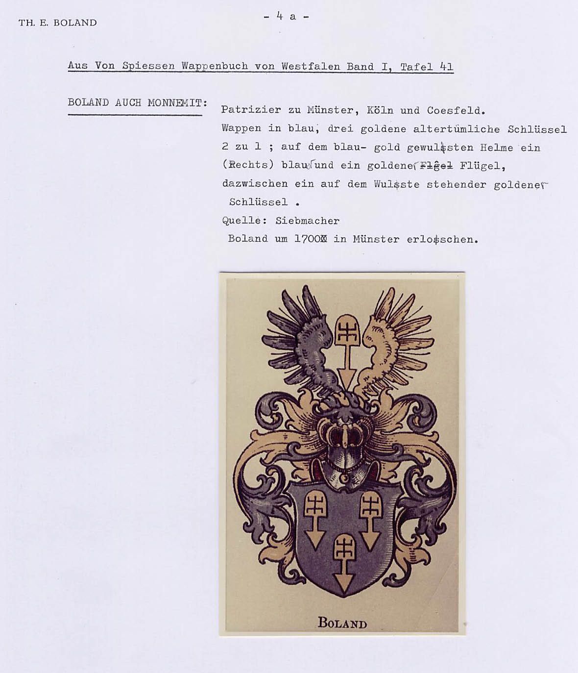 Het wapen van fam. Boland lijn 1 De bijbehorende zegelring